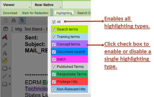 You can adjust the highlighting that displays in the document viewer.